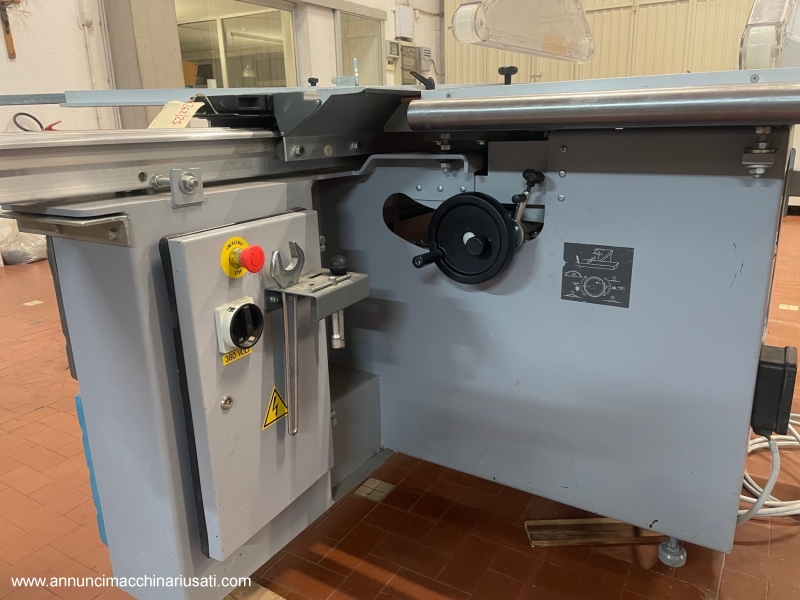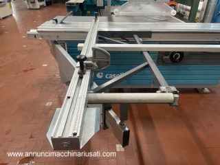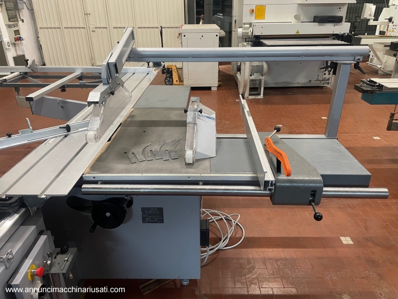 Casolin ASTRA SE 400 squaring machine used, carriage sliding on hardened round section guides, carriage length 3200 mm, width 400 mm, scoring unit 5.5 HP motor, max blade diameter 400 mm, scoring unit 120 mm, CE
