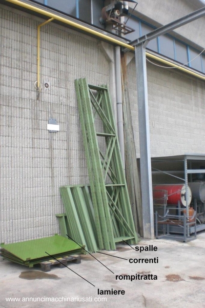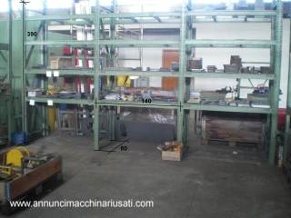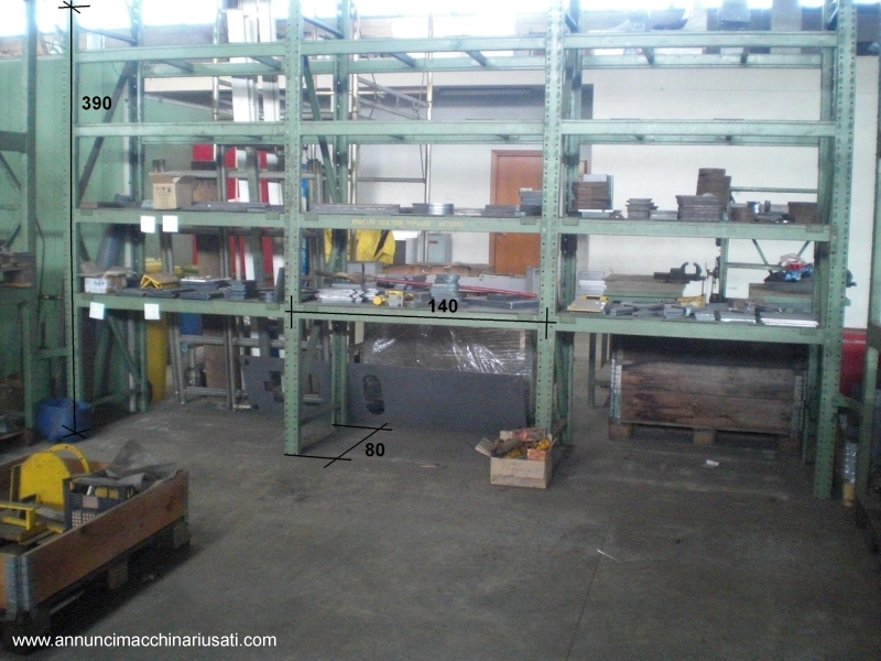industrial shelving ... used ... good condition ... No. 4 FEET 80cm deep and 390cm high + No. 36 BEAMS 140cm long + No. 36 central anti-fall cross-braces ... SHELF LOAD CAPACITY 2,600kg (with uniformly distributed load per pair of "beams") ... NOT FLAT ... upon request, there are possible no. 6 sheets 80x140cm thick ... price on request