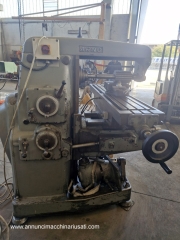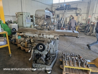 Fresadora marca Arno. Mesa de trabajo de 1550 x 320 mm. Recorridos de 1250 x 650 x 350 mm (alto). Equipada con avances en los ejes X, Y y Z. Cono de husillo ISO 30. Incluye cabezal birrotativo, mordaza, husillo, soportes del carro y extensiones del husillo, además de diversas herramientas (ver foto). Se puede ver en funcionamiento. Dimensiones totales: 2500 x 2400 x 2000 mm (alto). Peso: 2300 kg.