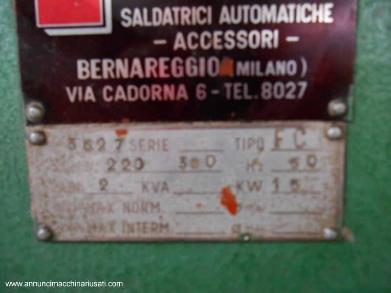 Soldadora de puntos de columna Fimmer FC, 15 kW de potencia. Tensión de alimentación: 380 V. Profundidad de brazo: 800 mm. Puntos precisos y uniformes. Excelente estado de funcionamiento.