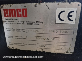 Torno autoaprendizaje, marca Emco, modelo Emcomat 200E, distancia entre centros 1000 mm, altura entre centros 200 mm, diámetro de torneado en el carro 220 mm, plato autocentrante Camlock 5, diámetro del husillo 51,6 mm, velocidad de rotación del husillo 0-3000 rpm, controlador CNC Fagor 8055T, dimensiones totales 2600 x 1700 x 1700 mm, peso 1800 kg. La máquina se encuentra en excelente estado y está completa con el equipamiento que se muestra en la foto.