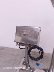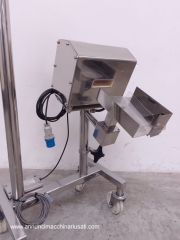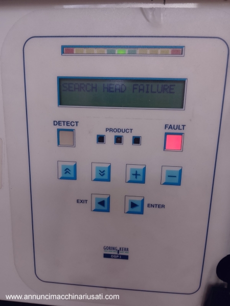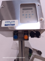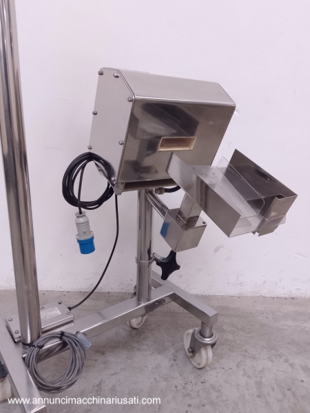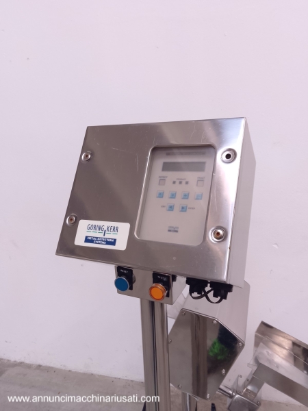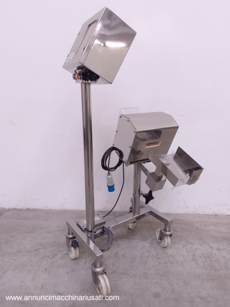 TIPO DE MÁQUINA: Detector de metales industrial de alta precisión. INDUSTRIA DE USO: Alimentaria, farmacéutica. CARACTERÍSTICAS ESPECIALES: El sistema de inspección está diseñado para detectar contaminantes metálicos en productos manipulados en líneas de producción. Su estructura de acero inoxidable garantiza durabilidad y resistencia. Montado sobre un carro móvil con ruedas bloqueables, facilita su posicionamiento e integración en diferentes estaciones de trabajo. El sistema incluye una unidad principal (detector de metales) y una unidad de control con electrónica avanzada, pantalla LCD y teclado de navegación. El sensor de detección es ajustable en altura e incorpora un sistema de clasificación/expulsión para desviar los productos contaminados a un contenedor de recolección. La pantalla incluye recuento de productos aprobados, recuento de productos rechazados e indicación del nivel de sensibilidad, lo que lo convierte en ideal para la monitorización de calidad y seguridad. Voltaje: 220 voltios. Dimensiones (LxAnxAl): 600x600x 1400 mm. Peso: 30 kg.