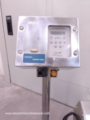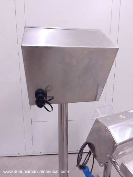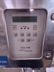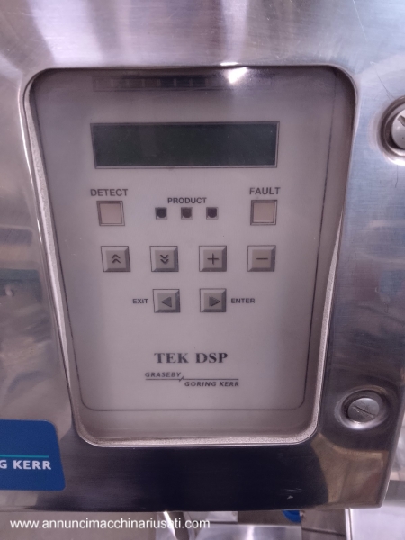 TIPO DE MÁQUINA: Detector de Metales Industrial. SECTOR DE USO: Industria alimentaria, farmacéutica y química. PECULIARIDADES: El modelo TEK DSP está diseñado para la inspección de productos en línea, garantizando la ausencia de contaminantes metálicos. Este dispositivo está equipado con electrónica de control con interfaz de operador, pantalla LCD y panel de botones, todo ello alojado en un robusto contenedor de acero inoxidable. El sensor de detección de acero inoxidable incluye una zona de paso de producto y un sistema automático de rechazo de productos contaminados, con un contenedor de recolección visible. La máquina está equipada con funciones de conteo de producto, un indicador de sensibilidad y un contador de rechazos, que señaliza fallos y detecciones mediante luces indicadoras y una pantalla. Su construcción en acero inoxidable y su diseño compacto la hacen ideal para entornos industriales que requieren higiene y precisión. Voltaje: 220 voltios. Dimensiones (An. x Pr. x Al.): 700 x 600 x 1220 mm. Peso: 30 kg.