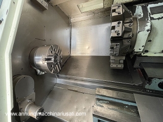 Torno CNC Biglia B301 usado – Precisión y fiabilidad Año de construcción: 2005 Fabricante: Biglia Estado: excelente, listo para probar y entrega inmediata Características principales Diámetro máximo de rotación: 400 mm Diámetro máximo de barra: 45 mm Diámetro máximo de recogida: 220 mm Longitud máxima de trabajo: 380 mm Nariz del husillo: ASA 5” Diámetro interior del husillo: 55 mm Mandril y potencia 3 garras Autoblok 210 BH Velocidad: 100–5000 rpm Potencia del motor: 11–15 kW Recorrido y movimiento del eje X: 160 mm | Z: 380 mm | B: 440 mm Rápido X/Z: 20 m/min | B: 12 ​​m/min Torreta y contrapunto Torreta bidireccional de 12 posiciones Contrapunto automático Ø 85 mm, cónico CM4 Accesorios Transportador de virutas de cinta Recogedor de piezas Sistema de protección completo Dimensiones y peso 3500 × 1650 × H 1900 mm | Peso: 3300 kg Máquina lista para usar, estable y precisa, ideal para mecanizados de precisión en acero, aluminio, latón, cobre y aleaciones especiales.
