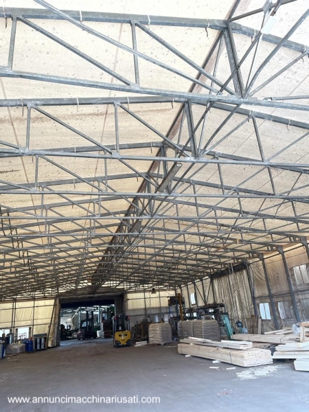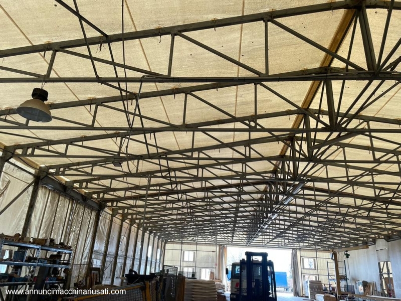 vendo capannone prefabbricato tensostruttura , dimensioni circa 21x38 mt due capannoni adiacenti per un totale di circa 1600 mq, si possono dividere in due realizzando quindi due capannoni da 800 mq ciascuno altezza utile interna 5 mt è disponibile la relazione di calcolo dell'intero progetto piu la relazione antisismica ha tutta la documentazione in regola pee essere nuovamente installato