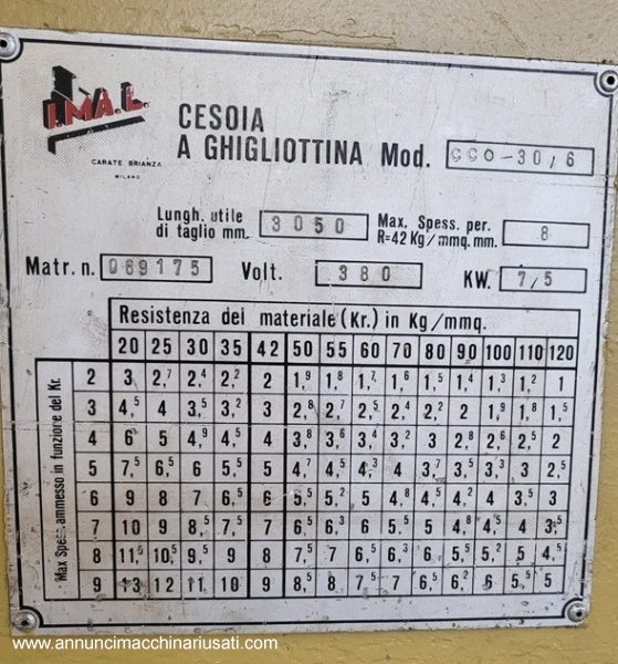CESOIA IMAL 3000 X 6/8 IDRAULICA MODELLO CC0.30/6 MAX SPESSORE R 42 : 8 mm REGISTRO MOTORIZZATO MACCHINA USATA FUNZIONANTE CODICE INTERNO: SVR 396