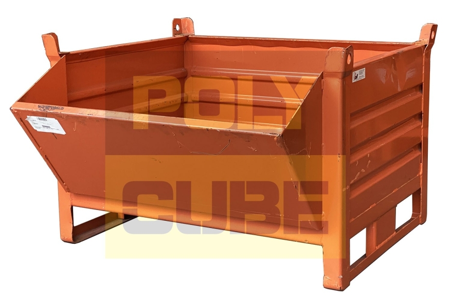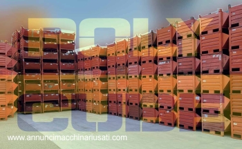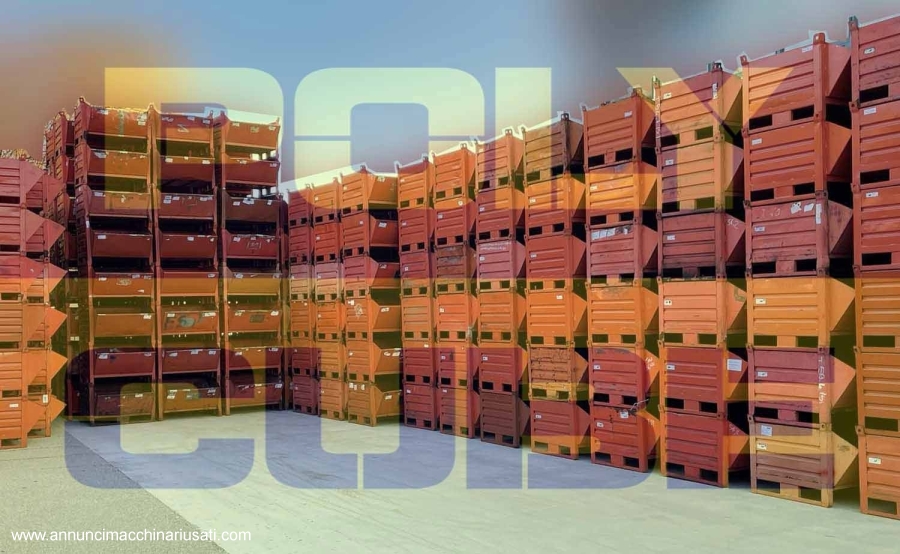 Le pareti e la base sono realizzati in lamiera grecata per aumentarne la portata e l’indeformabilità, hanno le slitte sul lato corto che ne permettono lo stoccaggio anche su scaffalatura ed una più facile e sicura movimentazione con carrello elevatore. Il lotto è di BUONA QUALITA’, alcuni contenitori hanno segni di ruggine superficiale e piegature. Misure esterne mm 1000x800+250 h695- Misure interne mm 1000x800+250 h500 - Portata kg 1000. Polycube Srl fornisce contenitori utilizzabili e pronti all’uso, il nostro obiettivo è quello di dare un quadro documentale più trasparente possibile (foto + descrizione). I contenitori non sono ripuliti e non vengono rimosse eventuali etichette. Possibilità di spedizione anche per piccoli quantitativi. Disponibilità: salvo il venduto, si consiglia di visitare il ns. sito per la verifica e la richiesta del preventivo.