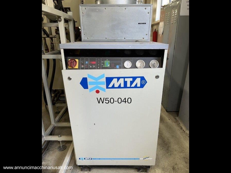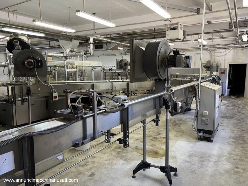 Un refrigeratore MTA, modello TAE 051, anno 2000, raffredda gli stampi nelle soffiatrici. Inoltre, i trasportatori ad aria KOSME, modello L2000, anno 1999, realizzati in acciaio inox AISI 304, trasferiscono le bottiglie soffiate al monoblocco di riempimento. In particolare, il sistema include armadi elettrici con PLC integrati e filtri dell’aria integrati. Pertanto, garantisce un efficace controllo del flusso d’aria e mantiene una qualità dell’aria costante. Da un punto di vista tecnico, ciò contribuisce all’affidabilità e alle condizioni igieniche a lungo termine.