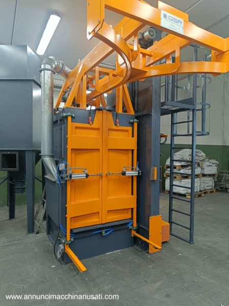 Granigliatrice usata a grappoli sospesi marca Cogeim Misure utili dei pezzi 800x1200 2 turbine da 5,5 kw completa di filtro e quadro elettrico con inverter turbine Le immagini i riferiscono al prima e dopo della eventuale revisione