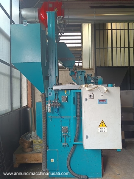 Granigliatrice automatica a teppeto rampante in gomma marca OMSG 400 ore di lavoro anno 2016 filtro atex con rotocella di carico polveri