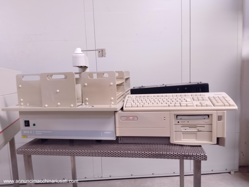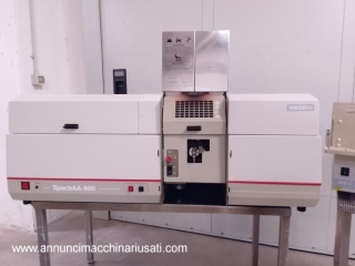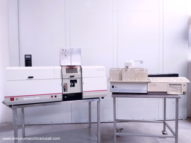 TIPOLOGIA DEL MACCHINARIO: Spettrometro ad assorbimento atomico professionale. SETTORE DI IMPIEGO: Farmaceutico, chimico, cosmetico, alimentare, dietetico, dispositivi medici. PECULIARITA': Il Varian SpectrAA-800 è progettato per l’analisi quantitativa di elementi metallici e metalli in tracce. Caratterizzato da elevata stabilità ottica e precisione analitica, è ideale per laboratori che necessitano di risultati ripetibili e conformi agli standard internazionali. La configurazione modulare consente un’analisi efficiente, mentre il sistema SPS-5 automatizza la preparazione del campione, migliorando produttività e affidabilità. Configurazione ottica: Sistema ottico ad alta stabilità Tensione selezionabile: 100–240 V ±10% Frequenza: 50–60 Hz Assorbimento: circa 80 VA Marcatura: CE Dotazione inclusa: Spettrometro Varian SpectrAA-800, SPS-5 – Sistema di preparazione del campione, PC dedicato per controllo e acquisizione dati, Pezzi di ricambio