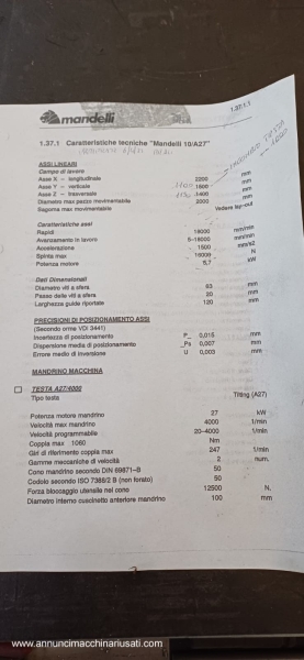 Centre d'usinage Mandelli A10/27 en parfait état de fonctionnement.