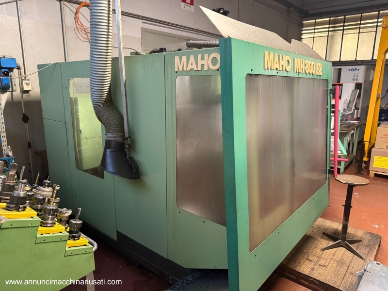 CENTRE D'USINAGE 5 AXES MARQUE : MAHO MODÈLE : MH 800 E2 ** Sur demande, un service clé en main complet est disponible, incluant le démontage, la préparation au transport, la réinstallation et la mise en service dans la nouvelle usine, ainsi qu'une formation dédiée des opérateurs. ** Commande numérique CNC type CNC 432 Zone de travail • Axe X (longitudinal) : 800 mm • Axe Y (transversal) : 550 mm • Axe Z (vertical) : 500 mm Broche verticale • Fixation de broche : ISO 40 • Course du fourreau : 80 mm • Distance maximale nez de broche – surface de la table : 514 mm • Vitesse de broche : 20 – 5000 tr/min Broche de fraisage horizontale • Fixation de broche : ISO 40