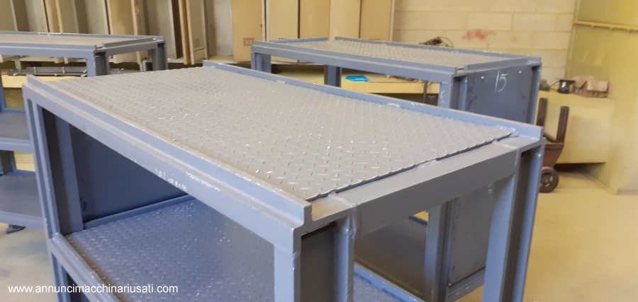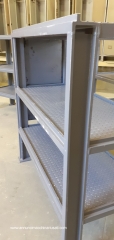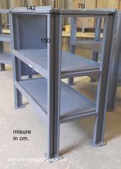 Je vends une étagère robuste (x3)... fabriquée à la main... très robuste... à peine utilisée... comme neuve... 142 cm de large x 70 cm de profondeur / 150 cm de haut - 3 étagères avec tôle gaufrée de 5 mm d'épaisseur et structure en fer robuste... récemment sablée et peinte... poids d'une seule étagère 500 kg... prix sur demande