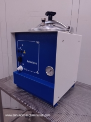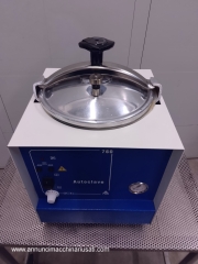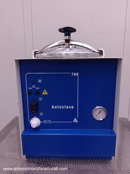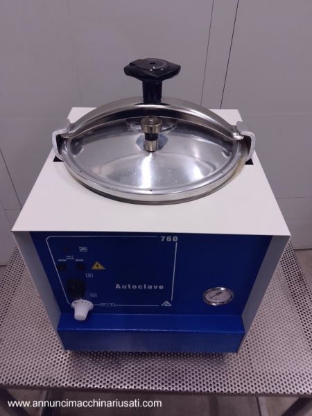 TYPE DE MACHINE : Autoclave à vapeur pour stérilisation de laboratoire. SECTEURS D'UTILISATION : Pharmaceutique, chimique, cosmétique, alimentaire, diététique, dispositifs médicaux. DÉTAILS : L'autoclave modèle 760 est un stérilisateur à vapeur conçu pour des cycles de stérilisation fiables et efficaces. Fonctionnant à une pression de 1 atm, il atteint une température de stérilisation de 121 °C, conforme aux paramètres standard de la stérilisation à la vapeur saturée. L'appareil est équipé d'une chambre de stérilisation de 20 litres en acier inoxydable, conforme aux exigences de la directive 97/23/CE (DESP), et d'un couvercle en acier inoxydable avec système de verrouillage mécanique, garantissant la sécurité pendant le fonctionnement. Le chauffage est assuré par une résistance électrique radiale, contrôlée par une minuterie réglable de 0 à 120 minutes, permettant un contrôle précis du cycle de stérilisation. Le contrôle des paramètres de processus est assuré par un manomètre analogique pour la pression de fonctionnement et un thermomètre numérique pour la température. La sécurité de fonctionnement est renforcée par un capteur de protection à réarmement manuel en cas de manque d'eau. L'autoclave est équipé d'un interrupteur principal et de voyants lumineux indiquant la mise sous tension, l'activation de l'élément chauffant et un niveau d'eau insuffisant. Son boîtier extérieur en acier revêtu de poudre résistant aux acides garantit robustesse, résistance chimique et facilité de nettoyage. Le cycle de stérilisation ne nécessite que 3 litres d'eau déminéralisée ou désionisée, ce qui rend l'appareil particulièrement économe en énergie. Grâce à ses limites de capacité et de pression de fonctionnement, l'autoclave n'est pas soumis aux inspections ISPESL, simplifiant ainsi la conformité réglementaire. CARACTÉRISTIQUES TECHNIQUES Dimensions internes de la chambre de stérilisation (diam. mm) : 280 × 330 Capacité de la chambre de stérilisation (litres) : 20 Dimensions hors tout (mm) : 400 × 360 × 560 Poids (kg) : 20 Alimentation : 230 V – 50 Hz Puissance absorbée (W) : 1500 Fusibles de protection : 2 × 10 AF (5 × 20 mm) Prise secteur : 16 A