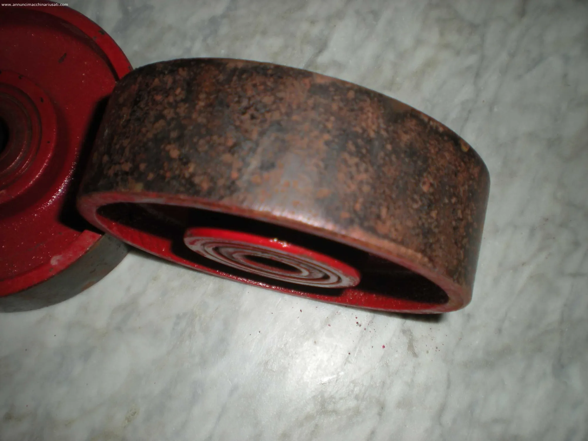 Roues en fer massif pour chariots ou autres usages lourds équipées de roulements d'occasion en bon état.