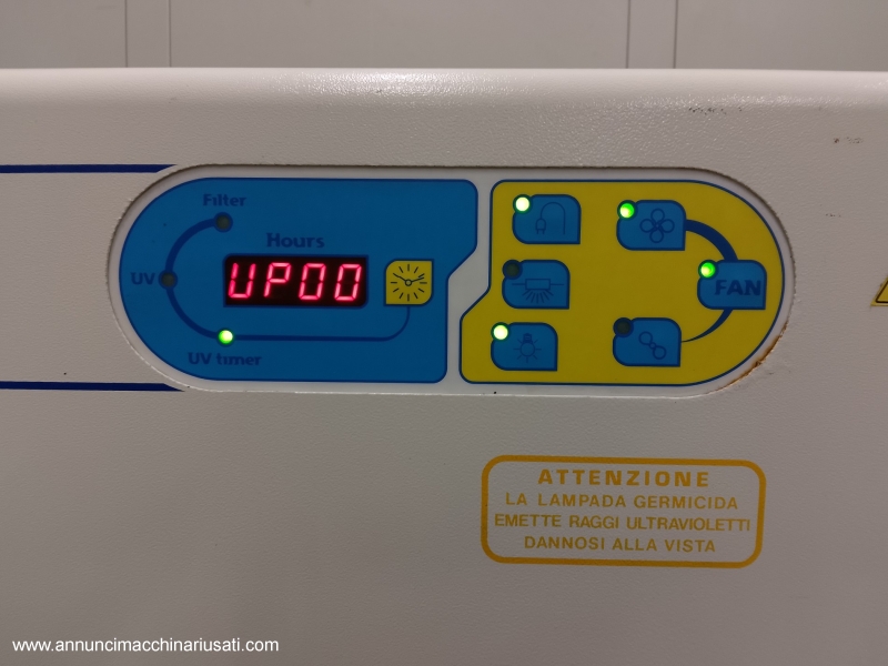 TYPE DE MACHINE : Hotte à flux laminaire vertical. INDUSTRIES D'UTILISATION : Pharmaceutique, chimique, cosmétique, agroalimentaire, dispositifs médicaux. DÉTAILS : La hotte à flux laminaire vertical ASAL Vertical 700 est conçue pour garantir un environnement de travail exempt de contamination grâce à un flux d'air vertical unidirectionnel et filtré. Sa structure est composée de surfaces internes lisses et désinfectables ; le plan de travail est en acier inoxydable. Le flux laminaire assure une distribution uniforme de l'air, réduisant ainsi le risque de contamination croisée. Équipée d'un système de filtration haute performance, d'un éclairage intégré et d'une lampe germicide UV pour la décontamination de la chambre, elle offre une commande aisée via un panneau de contrôle. Largeur nominale de la zone de travail : 700 mm ; Système de filtration : Filtre absolu haute efficacité (HEPA ou équivalent) ; Flux d’air : Vertical, unidirectionnel ; Éclairage de la zone de travail : Intégré ; Lampe germicide UV : Présente, avec minuterie ; Ventilation : Moteurs d’aspiration intégrés ; Alimentation : 230 V – 50 Hz ; Dimensions (L × l × H) : 750 × 640 × 780 mm ; Poids : 40 kg