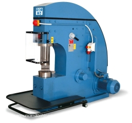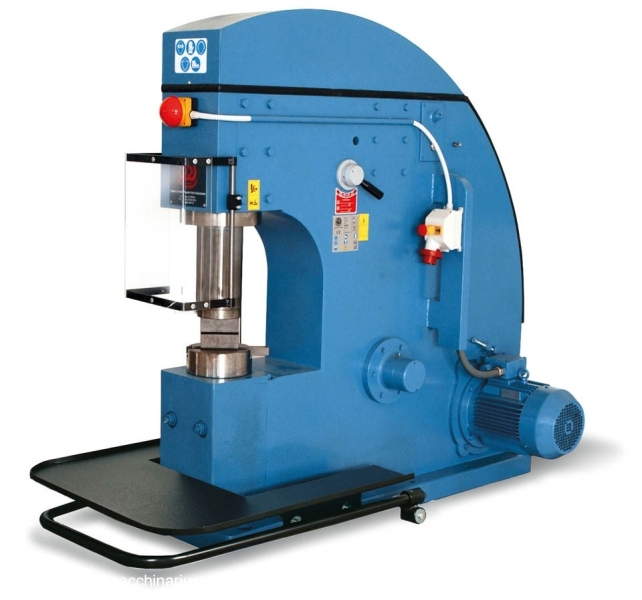Marteau très peu utilisé, pratiquement neuf, avec quelques moules inclus dans le prix. On le trouve en ligne, neuf, à plus de 16 000 € HT. Ce type de marteau a été conçu et fabriqué avec une structure solide et robuste. Son principe de fonctionnement permet une faible consommation d'énergie. Le double effet assure une performance et une rapidité d'exécution élevées. Le bâti en acier et tous ses composants sont assemblés pour une rigidité maximale. Fonctionnement : Le bâti contient deux cylindres, entraînés par un moteur électrique. L'air comprimé produit par le cylindre arrière est envoyé au cylindre avant pour actionner le marteau. L'alimentation en air comprimé est automatique ; la machine le produit d'elle-même. Cette série de marteaux est utilisée dans les petites, moyennes et grandes productions, permettant de réduire au minimum l'effort physique de l'opérateur. Caractéristiques techniques : Fonctionnement : Air comprimé. Pression nominale : env. 50 kg. Course : 230 mm. Vitesse de rotation : 220 tr/min ; Tension : 380 V ; Puissance du moteur : 7,5 CV à 1 400 tr/min ; Lubrification : Huile pneumatique ; Commandes : Pédale ; Moules et enclume : Moules à marteaux et enclume interchangeables ; Poids net : 1 300 kg