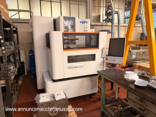 Machine de découpe par électroérosion à fil MARQUE : BEIJING AGIE CHARMILLES CO LTD MODÈLE : CUT E 350 **Un service clé en main complet est disponible sur demande, incluant le démontage, la préparation au transport, la réinstallation et la mise en service dans la nouvelle usine, ainsi qu'une formation dédiée des opérateurs.** Année de construction : 2014 Courses axes X, Y, Z : 350 mm x 250 mm x 250 mm Courses axes U, V : ±45° Angle/hauteur de conicité : ±30° Dimensions maximales de la pièce : 820 mm x 680 mm x 250 mm Poids maximal de la pièce : 400 kg Vitesse de déplacement des axes (XYZ) : 6 mm/min Protection anti-collision pour les axes X, Y, Z Diamètre du fil : 0,1 mm à 0,3 mm Dimensions hors tout de la machine : 1 750 mm x 2 470 mm x 2 200 mm Poids total sans diélectrique : 2 500 kg Équipement standard : Commande IHM AC Cut avec écran tactile 19" Générateur IPG-V Commande HMI2, enfilage automatique, traitement par immersion, règles en verre, transformateur refroidisseur