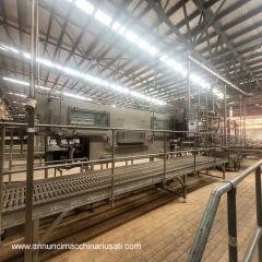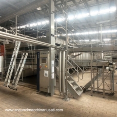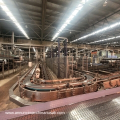 Questa linea di imbottigliamento usata è stata progettata per una produzione ad alta velocità di birra in contenitori di vetro ed è adatta ad applicazioni di imbottigliamento industriale di seconda mano. La linea integra lavaggio, ispezione, riempimento, tappatura, pastorizzazione, confezionamento in cartoni, palletizzazione e gestione del trasporto su nastri per una produzione di bevande efficiente.