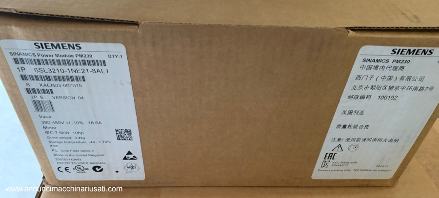 Inverter SIEMENS SINAMICS Power Module PM 230, 7,5 kW. Materiale nuovo ancora imballato.