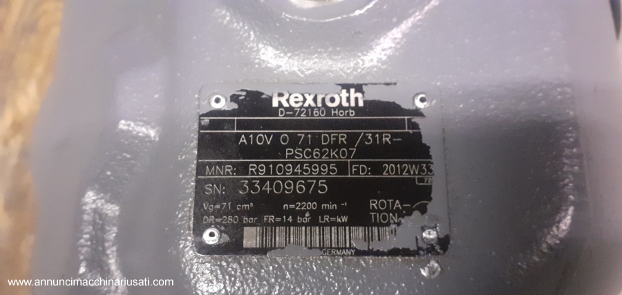 Pompa a pistoni assiali a cilindrata variabile A10VO71 DFR/ 31R PSC62 K07 rexroth ... cilindrata variabile ... load sensing ... A10V famiglia ... O circuito aperto ... 71 cc cilindrata ... DFR con regolatore di portata e pressione meccanico-idraulico ... serie 3 ... indice 1 ... R senso di rotazione DX ... P guarnizioni NBR ... S albero 32-4 (SAE C) 1.1/4" ... C flangia 2 fori ... 62 porta aspirazione e mandata su lati opposti ... K07 aperta per alloggiamento A10VO71 albero 32-4 (SAE C) 1.1/4" ... NUOVA ... prezzo su richiesta