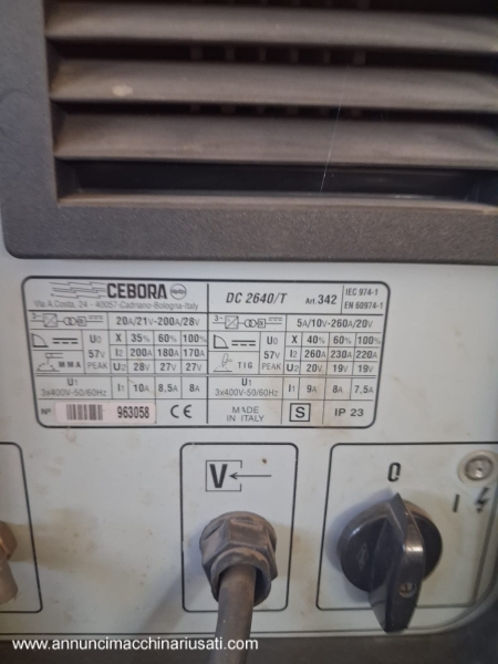vendo saldatrice Cebora usata poche ore a TIG - SOUD DC 2640/T ADC ACTIVE DYNAMIC CONTROL completa di torcia e carrello.