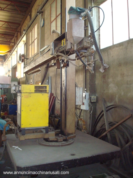 Saldatrice ad arco sommerso Esab con generatore da 800 amp, su carro motorizzato. Altezza massima di lavoro mt 4, sbraccio orizzontale mt 4