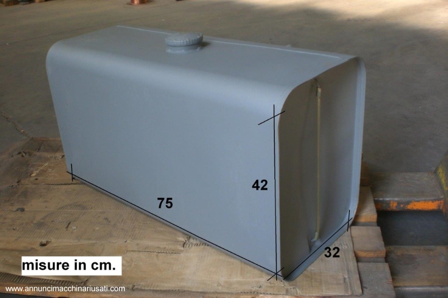 Vendesi serbatoio gasolio nuovo mai usato ancora imballato come da foto ... Deutz ... capacità 100 Lt. ... misure 32x75cm, x 42cm. H ... completo di staffe di fissaggio e tiranti ... livello SOLO visivo ... tappo ... attacco ritorno e mandata gasolio con rubinetto ... verniciato grigio deutz ... fondo di magazzino ... prezzo su richiesta